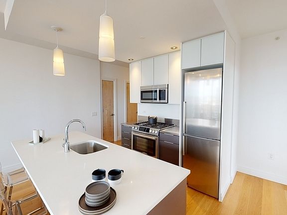 *Net effective rate based on a 12 month lease. Gross Rent: $6,302.81/month. No Fee! RENT STABILIZED APARTMENT!! Corner 2BR/2BA with large balcony and spectacular West/North views, open kitchen w/ island and breakfast bar, WIC, washer/dryer. This sun drenched unit offers prime views and a spacious layout featuring white oak hardwood floors, Bosch washer/dryer, stainless steel Bosch kitchen appliances, Caesarstone and stainless steel countertops, walk-in closet (WIC) with custom shelving, solar shades and bedroom blackout shades, in-sink garbage disposals, Hans Grohe bathroom fixtures, keyless electronic apartment access, LED energy efficient track lighting, Corian window sills, large ceiling-height windows offering great natural light and sunset views of Brooklyn, New York Harbor, and New York City skyline, and a balcony with floor to ceiling windows off the living room and soaring views of Brooklyn and Manhattan. Building Overview 300 Ashland: the newest addition to Fort Greene, where all the amenities and convenience of a modern building live alongside the vibrancy and culture of classic Brooklyn. These Studio, 1 Bedroom and 2 Bedroom residences were thoughtfully designed by world renowned architect, Enrique Norten. The dynamic 379-unit luxury building connects modern residences with the Fort Greene community. Centrally located at a unique triangular intersection in the heart of the Brooklyn Cultural District, this iconic building houses luxury apartments with panoramic views, high-end finishes, and full service resident amenities atop diverse cultural programming such as BAM Cinema theaters and a branch of the Brooklyn Public Library. With 11 subway lines just steps outside your door, 300 Ashland is truly UNLIKE ANYTHING, IN THE MIDDLE OF EVERYTHING The entire 29th floor club level offers a resident lounge and 24-hour state-of-the-art Health Club, with spectacular views in all directions. Adjacent to the amenities is an outdoor rooftop terrace designed by James Corner Field Operations, the same designers of The High Line. There you can take it all in comfortably from dedicated lounge areas, sun decks, and seating areas or grab a moment of solitude in the tranquil yoga platform. Across the street from BAM and featuring BAM Cinemas within the building itself, 300 Ashland is at the center of Fort Greenes cultural scene. A branch of the Brooklyn Public Library, a 651 ARTS dance studio, and art exhibitions by the Museum of Contemporary African Diaspora Arts, all within the building, ensure you can always find art and inspiration just an elevator ride away. Building features include: 24 Hour Front Desk Concierge 24 Hour Gym with state of the art cardio equipment, free weight area, and yoga studio Outdoor Roof Deck with lounge areas, table seating and yoga space designed by James Corner Field Operations, same designers as The High Line Resident Lounge with panoramic views of New York City Package Room/Valet Services with Cold Storage Parking Garage in Building Keyless electronic apartment access Washer/Dryers in every unit Bicycle Room 1.5 Month OP being paid to Brokers