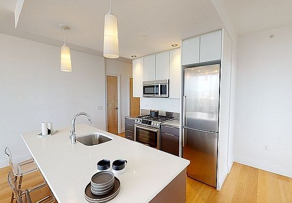 Gross rent: $6,590 High floor corner 2BR/2BA with large balcony and spectacular West/North views, open kitchen w/ island and breakfast bar, WIC, washer/dryer. This sun drenched unit offers prime views and a spacious layout featuring white oak hardwood floors, Bosch washer/dryer, stainless steel Bosch kitchen appliances, Caesarstone and stainless steel countertops, walk-in closet (WIC) with custom shelving, solar shades and bedroom blackout shades, in-sink garbage disposals, Hans Grohe bathroom fixtures, keyless electronic apartment access, LED energy efficient track lighting, Corian window sills, large ceiling-height windows offering great natural light and sunset views of Brooklyn, New York Harbor, and New York City skyline, and a balcony with floor to ceiling windows off the living room and soaring views of Brooklyn and Manhattan. Building Overview: 300 Ashland: the newest addition to Fort Greene, where all the amenities and convenience of a modern building live alongside the vibrancy and culture of classic Brooklyn. These Studio, 1 Bedroom and 2 Bedroom residences were thoughtfully designed by world renowned architect, Enrique Norten. The dynamic 379-unit luxury building connects modern residences with the Fort Greene community. Centrally located at a unique triangular intersection in the heart of the Brooklyn Cultural District, this iconic building houses luxury apartments with panoramic views, high-end finishes, and full service resident amenities atop diverse cultural programming such as BAM Cinema theaters and a branch of the Brooklyn Public Library. With 11 subway lines right outside your door, 300 Ashland is truly UNLIKE ANYTHING, IN THE MIDDLE OF EVERYTHING The entire 29th floor club level offers a resident lounge and 24-hour state-of-the-art Health Club, with spectacular views in all directions. Adjacent to the amenities is an outdoor rooftop terrace designed by James Corner Field Operations, the same designers of The High Line. There you can take it all in comfortably from dedicated lounge areas, sun decks, and seating areas or grab a moment of solitude in the tranquil yoga platform. Across the street from BAM and featuring BAM Cinemas within the building itself, 300 Ashland is at the center of Fort Greenes cultural scene. A branch of the Brooklyn Public Library, a 651 ARTS dance studio, and art exhibitions by the Museum of Contemporary African Diaspora Arts, all within the building, ensure you can always find art and inspiration just an elevator ride away. Building features include: 24 Hour Front Desk Concierge 24 Hour Gym with state of the art cardio equipment, free weight area, and yoga studio Outdoor Roof Deck with lounge areas, table seating and yoga space designed by James Corner Field Operations, same designers as The High Line Resident Lounge with panoramic views of New York City Package Room/Valet Services with Cold Storage Parking Garage in Building Keyless electronic apartment access Washer/Dryers in every unit Bicycle Room Stroller Parking As if your home wasn't already in the middle of everything, coming soon to 300 Ashland is a 365 Whole Foods-convenient and easily accessible wellness right downstairs.