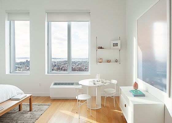 No fee! Rent stabilized! High floor Studio w/ unobstructed sunset views of the Verrazano Bridge, separate kitchen area from living space. This well laid out studio features white oak hardwood floors, Bosch washer/dryer, stainless steel Bosch kitchen appliances, Caesarstone and stainless steel countertops, custom closet shelving and finishes, solar shades throughout apartment and blackout shades, in-sink garbage disposals, Hans Grohe bathroom fixtures, keyless electronic apartment access, LED energy efficient track lighting, Corian window sills, large ceiling-height windows with western exposures offering great natural light and sunset views of New York Harbor, Verrazano Bridge, and Statue of Liberty. Building Overview 300 Ashland: the newest addition to Fort Greene, where all the amenities and convenience of a modern building live alongside the vibrancy and culture of classic Brooklyn. These Studio, 1 Bedroom and 2 Bedroom residences were thoughtfully designed by world renowned architect, Enrique Norten. The dynamic 379-unit luxury building connects modern residences with the Fort Greene community. Centrally located at a unique triangular intersection in the heart of the Brooklyn Cultural District, this iconic building houses luxury apartments with panoramic views, high-end finishes, and full service resident amenities atop diverse cultural programming such as BAM Cinema theaters and a branch of the Brooklyn Public Library. With 11 subway lines right outside your door, 300 Ashland is truly UNLIKE ANYTHING IN THE HEART OF BROOKLYN! The entire 29th floor club level offers a resident lounge and 24-hour state-of-the-art Health Club, with spectacular views in all directions. Adjacent to the amenities is an outdoor rooftop terrace designed by James Corner Field Operations, the same designers of The High Line. There you can take it all in comfortably from dedicated lounge areas, sun decks, and seating areas or grab a moment of solitude in the tranquil yoga platform. Across the street from BAM and featuring BAM Cinemas within the building itself, 300 Ashland is at the center of Fort Greenes cultural scene. A branch of the Brooklyn Public Library, a 651 ARTS dance studio, and art exhibitions by the Museum of Contemporary African Diaspora Arts, all within the building, ensure you can always find art and inspiration just an elevator ride away. Building features include: 24 Hour Front Desk Concierge 24 Hour Gym with state of the art cardio equipment, free weight area, and yoga studio Outdoor Roof Deck with lounge areas, table seating and yoga space designed by James Corner Field Operations, same designers as The High Line Resident Lounge with panoramic views of New York City Package Room/Valet Services with Cold Storage Parking Garage in Building Keyless electronic apartment access Washer/Dryers in every unit Bicycle Room As if your home wasn't already in the middle of everything, 365 Whole Foods-convenient and easily accessible wellness right downstairs. Smoking allowed:No