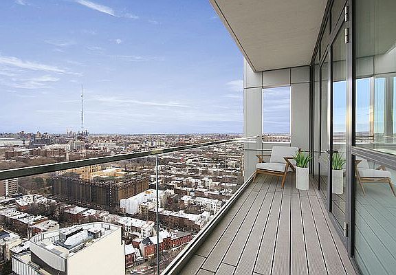 No Fee & Rent Stabilized! Rare Penthouse corner 1 BED/1BA with private balcony offers loft-like ceiling heights, large floor to ceiling windows and sunset views of New York Harbor. Featuring walk-in-closet, white oak hardwood floors, Bosch washer/dryer, stainless steel Bosch kitchen appliances, Caesarstone and stainless-steel counter tops, custom closet shelving and finishes, solar shades throughout apartment, in-sink garbage disposals, Hans Grohe bathroom fixtures, key-less electronic apartment access, LED energy efficient track lighting, Corian window sills. Building Overview: 300 Ashland offers all the amenities and convenience of a modern building alongside the vibrancy and culture of classic Fort Greene, Brooklyn. Our Studio, 1 Bedroom and 2 Bedroom residences were thoughtfully designed with high-end finishes, panoramic views, and full-service resident amenities atop diverse cultural programming. The first nine floors of our building include BAM cinema theaters, a branch of the Brooklyn Public Library, MoCADA, 651 ARTS, a 365 Whole Foods and Apple store. With 11 subway lines right outside your door, 300 Ashland is truly UNLIKE ANYTHING, IN THE MIDDLE OF EVERYTHING! Building Amenities include: 24 Hour state of the art Gym with studio offering a variety of classes Outdoor Roof Deck designed by James Corner Field Operations, same designers as The High Line BBQ Grill Station Resident Lounge with work-from-home space and WiFi throughout Valet Services with Cold Storage Parking Garage in Building Key-less electronic apartment access Bicycle Room Stroller Parking 24 Hour Front Desk Concierge Smoking allowed:No
