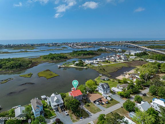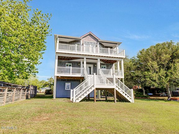 Enjoy the breathtaking views of the ICWW from this grand 5 bedroom, 3 ½ bath waterfront home nestled on a quiet street in Surf City! Relax on the porch while sipping morning coffee or an evening glass of wine after a day at the beach. There are cool ocean breezes and views for miles from both porches, each with Trex Deck floors for low maintenance. Bring your family and friends, there is room for everyone! This perfect home offers a reverse floor plan with Master suite on the main level with huge kitchen, great room flooded with natural light, pantry, wet bar and tile flooring throughout with direct access to upper porch. First floor includes 4 additional bedrooms and 2 Jack and Jill baths and access to the covered lower porch. Lower floor offer a workroom and half bath The layout would accomodate an elevator should you desire to add one and offers tons of storage for all the gear. This waterfront home includes an electric powered wet slip for your boat. Enjoy the conveniences of the mainland with all amenities while still being close to the beach.