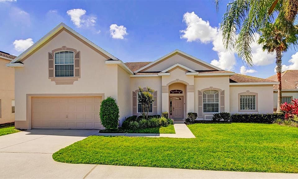 Look no further! You've found your new home! Spacious 5 bedrooms 4 bathrooms pool home sold fully furnished. This well-designed and beautifully maintained property benefits from four downstairs bedrooms including the expansive owners suite. Upstairs is an additionally bedroom and bathroom. As your enter the front door, you are welcomed into a small hallway, off which is the tiled living room and tiled dining room with direct access to the kitchen, with lots of counter space, cabinets and pantry. The kitchen sits alongside the family room and breakfast dinette which overlooks the rear of the home. No better way to enjoy the beautiful Florida weather than your own enclosed south facing pool! Whether you are having fun in the sun or dining alfresco under your covered lanai, this home is designed for those who enjoy entertaining. For those rainy days or chilly nights, the garage has been converted to a games room but could easily converted back into a garage. Roof was replaced in 2019. This desirable community has tennis courts, basketball, beach volleyball and two play areas. Ideally located on highway 27, close to medical facilities, Posner Park shopping mall, restaurants, and grocery stores as well as easy access to major roadways including I4, and 192. Best of all it provides easy access to the theme parks, world renowned designer outlets and the airport. Time to experience the Florida lifestyle! This is a successful short-term rental property and sellers bookings convey to new owners at closing. Home would also make a beautiful family home.