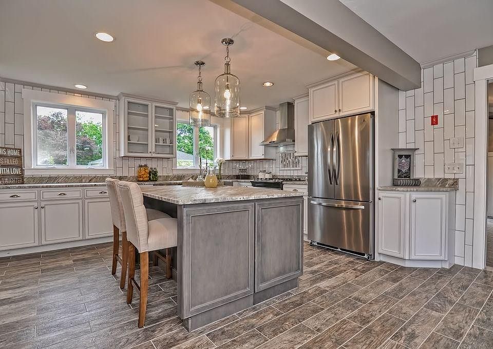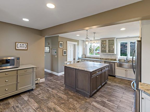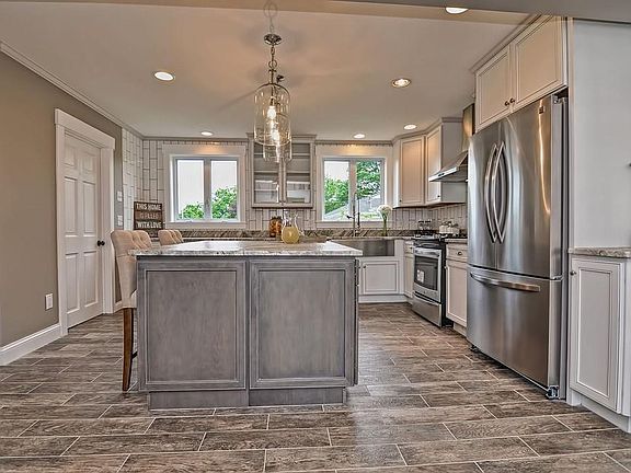 Welcome Home! Look no further! Here you will find a gorgeous remodeled farmhouse with all the upgrades you could ask for! The 5 star kitchen comes with custom textured granite counter tops, high end ss appliances, recessed lighting, beautiful lanterns above the large island and custom back splash that will take your breath away! Set the table in your spacious dining room or get some work done in your study/office! Can be used as a 4th bedroom! Start up to the second floor where you will find a master bedroom with vaulted ceilings / fan, 2 additional bedrooms and another custom tiled bathroom! Drop down attic for lots of storage! Walk down a few steps and you will find yourself in a massive living space.Enjoy the vaulted ceilings, track lighting and ceiling fans! Two custom bathrooms on the first level. Open your french doors to the maintenance free back deck! You asked for it! Here it is, the perfect home with a perfect yard!