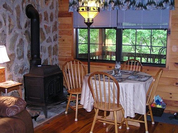 Cozy, furnished secluded cabin in the woods on 3.3 acres. Ideal getaway, all you need is your clothes, toothbrush and linens, what an easy move! Wood burning stove, covered decks and porches to enjoy the peaceful surroundings. NO W/D hookups! Enjoy horseback riding, hiking, trout fishing, rafting and boating within minutes. Shared well fee is $25 per month. $65 non-refundable application fee per person.