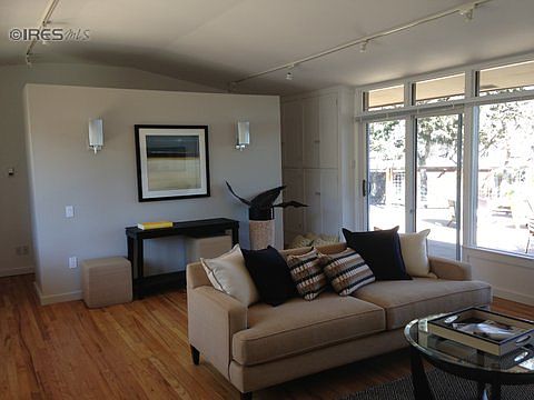 Well maintained & updated mid century modern ranch style home in beautiful private setting at base of Chautauqua. Trails footsteps away! Perched up on the lot with views to mountains/plains & city lights. Great natural sunlight, quiet/forever views/ serene spaces both indoors/out.Lower level configured for either 2 bedrooms or wonderful office w/adjacent stone patio. Clean architectural lines & design/vaulted ceilings/2 gas fireplaces,hardwood floors, in floor radiant heat.Shows impeccably!