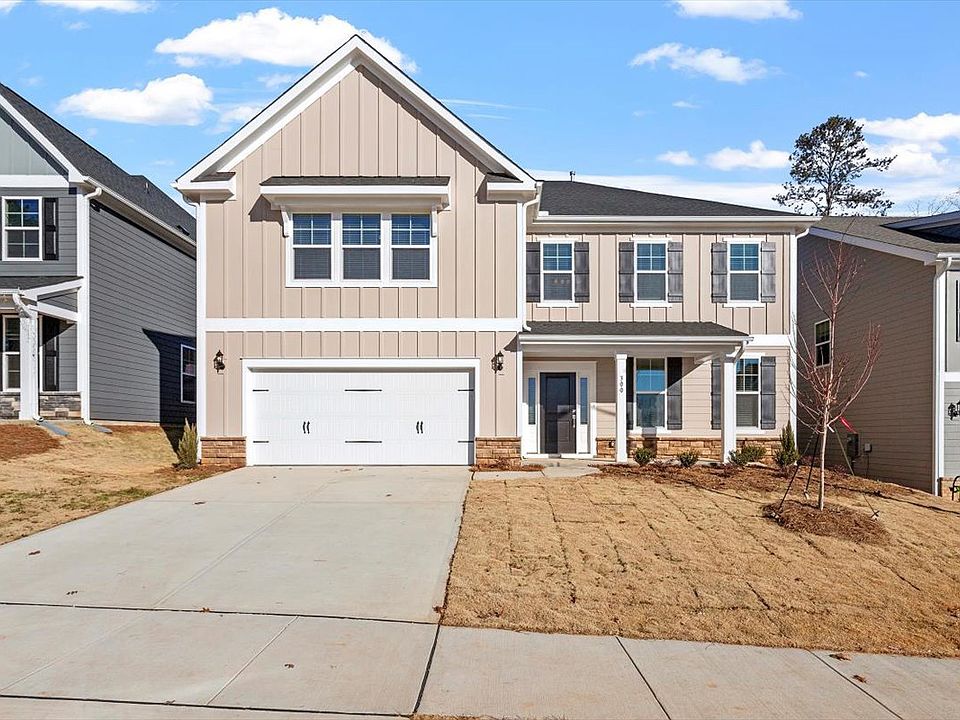 If you are searching for a stunning new home that effortlessly combines classic design with the ideal location, look no further! Georgia's Landing is a quick 14-minute drive from downtown Raleigh, 10 minutes to the Farmer's Market District, a hop and skip to Pullen Park, and steps away from shopping and delicious eats. This stunning two-story home is here to check off all of your boxes! Home Office, SUNROOM, large great room with coffered ceiling, AND guest suite on the main floor! Check, check, and check! You'll find a large open chef's kitchen with a massive center island that flows directly into the great room. Hooked already? There is more- enjoy playing games, or movie nights in your bonus room. The primary suite is an OASIS. This bedroom is huge with natural light pouring in through the FIVE windows! Open your double doors to enter the primary bathroom with a tiled walk-in shower, dual sinks, two walk-in closets, and two linen closets! Located inside scenic Georgia's Landing, with resort-style amenities, and miles of walking trails, just 15 minutes to Downtown Raleigh. This is truly the home of your dreams. Call to schedule an appointment today!
