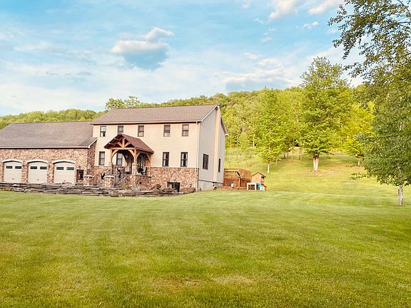 Stunning and Secluded Home & Property! 4 Bedroom home with attached 3 car garage on 21 +/- Acres, Boasting 3 ponds and woods with trails. The home is private, not visible from the road and no neighbors in sight! Amazing hillside views from the top of the property. The home has a beautiful kitchen with new stainless appliances, ample cabinet space and granite counters. A Breakfast bar separates the kitchen and dining room. The dining room offers custom built in cabinets with matching custom dining table, chairs and bar chairs. On the first floor there are two living rooms (or first floor office or den) and a half bath with laundry. On the second floor there are three bedrooms and 2 full baths. The Large Master Bedroom has an extra spacious walk-in closet. Master bathroom with custom walk-in shower and soaking tub as well as a second floor balcony looking out over the property. Central Air, Central Vac The finished basement offers lots of storage, a bonus craft or office space, 4th bedroom and family room. This space could easily be converted into an in-law apartment or home office, with a separate entrance through the garage. The heated garage has been updated and is efficient with spray foam insulation, metal walls, 10' doors and 15' ceilings. There are 3 bays with extra tall doors to allow space for large vehicles. Thre is an option to finish the space above the garage for added living space. Large yards surrounded by trees. Entering the home you are greeted with an impressive timber frame front porch that is surrounded by a stone wall and landscaping. Off the back of the home there is a two tier deck, great for entertaining, with a patio space leading to the expansive back yard. A storage shed with porch adds space for whatever you want to make it; a play house, she-shed, hunting cabin or storage. Thre are 3 Ponds on the property. 2 of the 3 ponds are spring fed and stocked, with the largest of the ponds being 15+/- feet deep. Behind the upper pond you will find woods with trails, great for recreation or hunting. Many options with this property, there is even room to build a pole barn or another home. In-ground electric pet fence already installed. Municipal electric. Desirable country location providing convenient access to Route 12 and just short drive to both Sherburne and Hamilton. This property is located in the town of Sherburne, Chenango County, New York. It is less than a 10 minute drive to the Village of Sherburne. About 15 minutes from the home is the Village of Hamilton, home of Colgate Univeristy. This Upstate NY location is close to New York State lands which allow space for outdoor recreation, Hunting and Horseback riding. The Charles E. Baker State Forest, is a 9,400 acre forest property and combined with the Brookfield Railroad and Beaver Creek State Forests, provide 100 miles of connected trails. These recreational trails are open for hiking, horseback riding, snowmobiling, cross country skiing, snowshoeing and mountain biking.