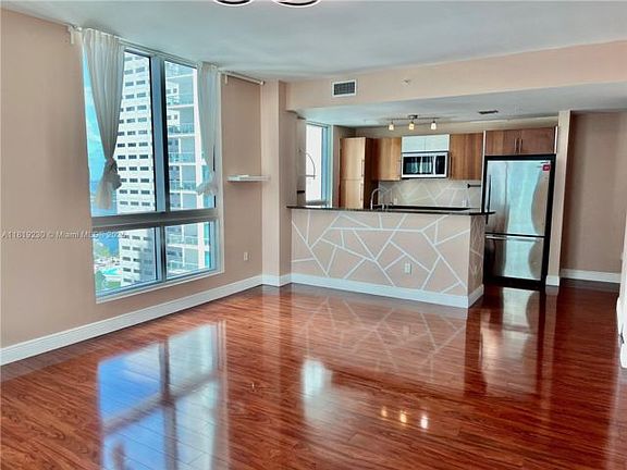 Fabulous city views from this 1/1.5 with North West exposure & partial bay views. Wood floors throughout, customized built-in in living room, three custom closets. Italian cabinetry, granite counter tops, stainless steel appliances, washer and dryer, water, cable and Internet included in maintenance fee. One assigned parking space. Walk to Whole Foods Market, Bayfront Park, metro mover and Novikov Bar & Grill Restaurant, Joe & the Juice downstairs, 17-screen Silverspot Cinema. Building offers luxurious life style, 24-hr front desk attended. Chic downtown living at its best!..Jaime Enriquez.English-Spanish...Courtesy of Met Miami Properties (Listing 3308599 Confirmed 7/23/2025)