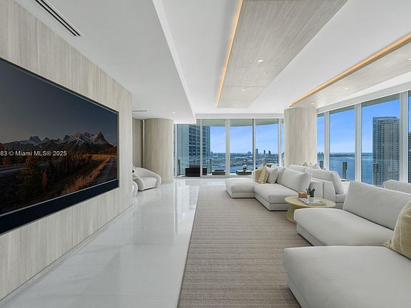 Step Inside With Me! Thoughtfully curated and impeccably upgraded, this stunning corner residence at the iconic Aston Martin Residences offers 5 beds, 5.5 baths & over 3,900sf of refined interiors & panoramic views of Biscayne Bay. Furnished by luxury designer Steven G., the social areas, primary suite, & a guest bedroom are elegantly appointed. This brand new space features custom closets & cabinetry, a 98" TV w/ sound bar in the great room and a concealed 65" TV in the primary suite with Nexus system. Smart home automation with Savant, automatic shades, and a private elevator foyer add to the comfort and convenience of this home. Residents enjoy over 42,000 sq. ft. of unmatched amenities including an infinity pool, spa, fitness center, curated art gallery, marina, helicopter pad & more.