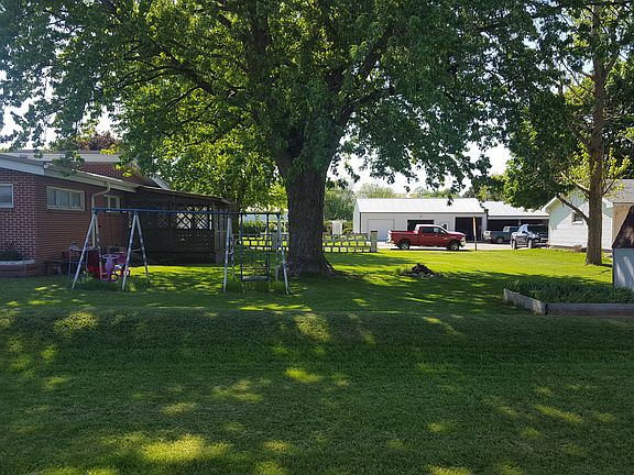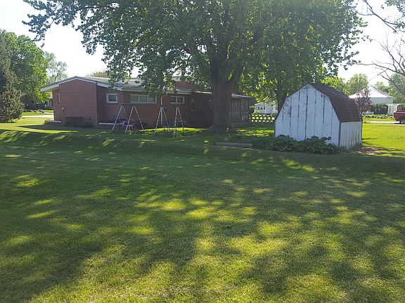 Cute starter home on oversized corner lot! Great location right next to school, gymnasium and ball fields. Quiet part of town with great neighbors! Home features 2 main bedrooms, with two, non-conforming bedrooms in the basement. Some windows have been replaced along with a metal roof installed in 2011. New flooring in kitchen and carpet throughout home. This house also benefits from an underground sprinkler system along with a gas fireplace in the living room. Small storage shed in backyard can be used for lawn equipment/etc.