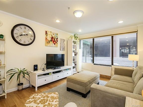 Chic 2 bed 2 bath corner unit in the heart of Stamford in short walking distance to downtown shopping, many restaurants and the train station. The unit offers an open floor plan, large wall-to-wall windows, new kitchen with granite counter tops, bamboo floors throughout and washer & dryer in the unit. The building offers a gym on the main floor and a large patio for grilling. The unit comes with two reserved outdoor parking spots. Extra storage space is available for $50 per month. Building is pet friendly. Very efficient unit - total utility bill is between $50-$150 per month.