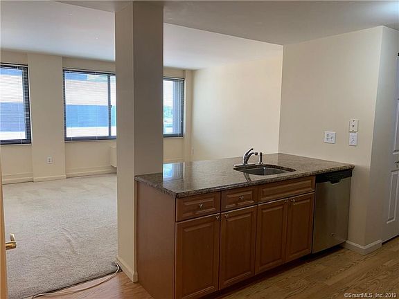 What could be better than being in the heart of downtown! This 1 bedroom, 1 bath condo is in a building that offers proximity to downtown amenities and is a commuter's delight. Building offers security, gym and patio with seating and grilling area. Enjoy seasonal views of LI Sound from the Living Room, nicely appointed Kitchen with washer/dryer, generous Bedroom and Bath. Whether you're looking for a night of restaurant dining or theatre, movies or live performances; lots of shopping options or quiet library time - this is the place! Parking space 309 on open parking deck. Move in/out fee of $125, additional storage and parking available for additional cost.