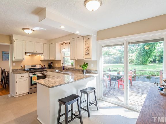 What an amazing & rare property! Tastefully updated & meticulously well-maintained split level with 2-car carport on giant setback 1.24 acre lot w/in walking distance to restaurants, grocery, Rolesville Main Street Park, & more! Must see in person to appreciate how stunningly beautiful the wooded lot is! New granite counters, stainless appliances & tile flooring, re-faced cabinetry, wood floors in all bedrooms & family room, new carpet in dens, tankless water heater, new roof, newer Pella windows! HURRY!!