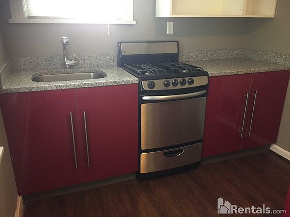 2nd floor apartment in duplex. Separate private entrance. Renovated kitchen with granite countertops and island. New wood-look flooring throughout. Non-working fireplace in living room. Laundry hookups in basement and storage area in basement. Off street parking in private driveway.