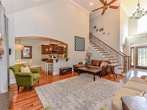 Custom built in Matthews on .62 acre w no HOA.5 bed/3ba home w master and 2nd bed on main. Hardwoods throughout w custom inlay in DR. 2 st great room w frpl and granite surround. Gourmet kitchen w granite, custom backsplash, SS appl, and breakfast bar.Master bedroom w double tray ceiling, sitting area, his and hers closets. Luxury master bath w whirlpool tub, lg shower w custom tile, dual vanities.2 bedrooms and 3rd bed/bonus up, all w hardwood floors Fenced backyd w paver patio, lg deck, custom firepit.