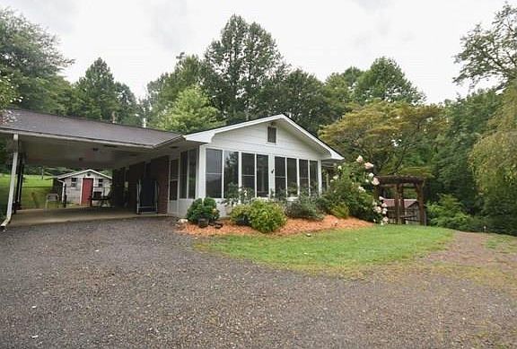 This lovely 2 bedroom + Bonus Room/2 bath, brick home is located on 6.45 unrestricted acres in Otto. The exterior features a nice yard with fenced area, plenty of privacy, pretty views, and mature landscaping with beautiful perennials and fruit trees, a great garden spot, a single attached carport, as well as a double detached garage with workshop, a block canning house, and a small barn for storage. The main-level features a newly renovated kitchen, stainless steel appliances, granite counter-tops, solid cherry shaker style cabinets with easy close hinges and pull out drawers, new hardwood flooring has been installed throughout the main level, a newly renovated bathroom with a large custom tiled walk-in shower and new vanity w/ granite top, beautiful stone fireplace with gas logs located in the family room, also located off of the family room is a large enclosed sun-room/three season room with thermal windows. The lower-level features indoor/outdoor access, a family room w/ a pellet wood stove, an attached kitchen area, a newly renovated bathroom with custom tiled shower with seat, a new vanity with granite tops, and a large bedroom or rec room. This home is a MUST SEE!!