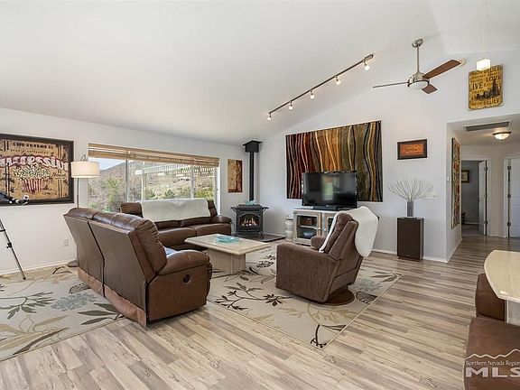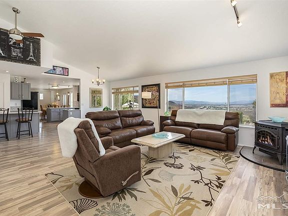 Stunning horse property with expansive views in every direction! Situated on 10 acres with no HOA and easy access to Pyramid Highway, 300 Cabrillo Lane boasts numerous upgrades and plenty of room for your horses and recreational vehicles. Natural light floods the well-designed, single story floorplan which features 3 bedrooms, 2 full bathrooms and several flex-space options throughout 2194sf. Youll love the tranquil setting of this truly special home in Spanish Springs! Interior features include: formal living room with vaulted ceiling, pellet stove and ceiling fan; formal dining room with wet bar; beautifully upgraded/updated kitchen with quartz countertops, custom tile backsplash, stainless appliances, walk-in pantry and several cabinets with pull-out drawers; informal dining area/flex space; family room with gas-log fireplace and French door to the pack patio; primary bedroom with walk-in closet and a slider to the enclosed patio; primary bathroom with dual sinks and an upgraded walk-in shower with custom tile surround; two spacious secondary bedrooms; secondary bathroom with dual sinks, tile flooring and tub/shower combo; and a laundry room with cabinets. Exterior features include: low-maintenance landscaping; charming walkway leading to the covered front porch; massive concrete patio in back with multiple vantage points from which you can enjoy the breath-taking views; enclosed patio to escape the colder temps while still enjoying the views; mature trees, including 1 apple and 3 peach trees; outbuilding with 3 horse stalls; large corral; 6 ft chain link fencing around <1 acre; additional fencing around the corral and back of property; and an automated drip system for all trees and many shrubs. Bonus features include: laminate flooring throughout the formal rooms, kitchen and hallways; updated light fixtures throughout; Kinetico water softener/water filtration system; new well pump installed in 2019; separate, programmable thermostat for pellet stove; huge crawlspace area with lighting and room to stand; and a 767sf, 3-car garage with tons of additional storage space!