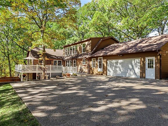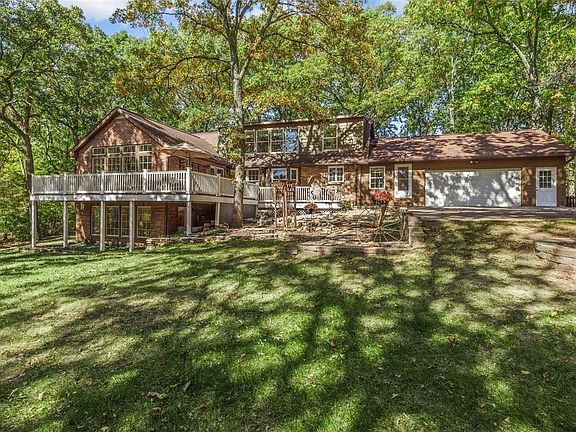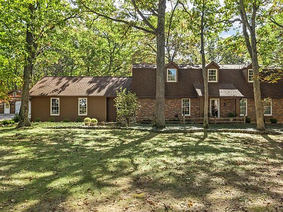Welcome to your private sanctuary on approx. 6.64 acres of serene, park-like grounds. This meticulously maintained 1.5-story home combines elegance and natural beauty. An updated kitchen features warm wood cabinetry, quartz counters, stainless appliances, and a cozy breakfast bar. The dining nook opens to the living room and a grand great room with tall ceilings, a fireplace, and expansive views. The main-floor primary suite boasts double sinks, a soaking tub, and a walk-in shower. Upstairs offers a sitting room, 2 spacious bedrooms with large closets, and a lower level with a rec room and den with a wood-burning fireplace. Enjoy an oversized attached garage, a detached garage with a workshop, and a private 3/4-acre pond for year-round enjoyment. Located in the desirable Francis Howell School District, with additional acreage available for an even larger retreat. Additional Rooms: Mud Room
