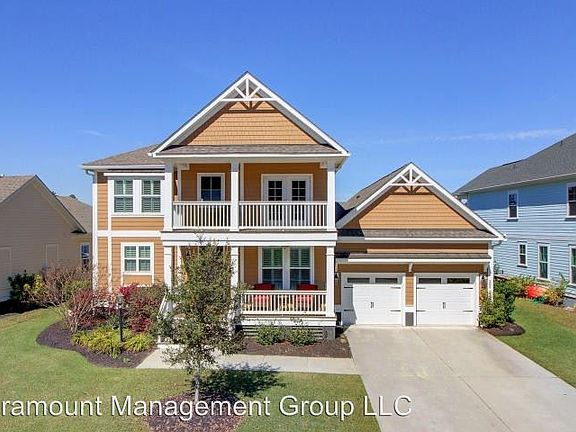 Stunning lakefront home with downtown Charleston stylings all within minutes drive to Volvo and booming Summerville area! Prepare to be impressed at the high end appointments, stunning homesite and community. As you drive up, you'll be immediately struck by the regal double front porches and pristine landscaping. Entering the foyer, you're greeted by 5'' hardwoods that extend into the office/den, family room, kitchen and dining room. The kitchen is a chef's delight, featuring extended cabinetry, stainless steel gourmet appliances with built-in gas cooktop, wall oven and microwave and a stainless steel hooded vent. The island kitchen also includes granite counter tops, 36'' raised panel maple cabinets with cove crown molding, subway tile backsplash, pendant and recessed can lighting, bar top seating and a large walk-in pantry. The downtown Charleston feel is elevated by the beautiful plantation shutters found at every window throughout the house. The family room features a raised hearth gas fireplace and crown molding. The adjacent dining room stuns with two-piece crown molding, wainscoting and picture framing and a custom chandelier. The downstairs master suite includes high-end pattern loop, single piece crown molding, door access to the massive back deck, his and hers vanities and closets, a walk-in tile shower and large soaking tub. Making your way upstairs, you'll find a large bonus room, perfect for a media room, playroom or man cave. All secondary bedrooms have walk-in closets. Two bedrooms share a jack n' jill bathroom while the other has access to a full hall bath. DO NOT MISS THE INCREDIBLE OUTDOOR SPACE! A large screened-in porch and huge deck overlook a beautifully landscaped yard with black aluminum fencing and faces a 350 acre lake! Imagine your evenings spent entertaining in this incredible space with the best views in Summerville! Don't miss out on this opportunity to live on one of the last lake lots in The Coves in this highly-appointed home!