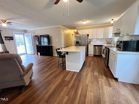 Ranch Home in Excellent Wake County Location! Open Living Areas, Updated Kitchen w/ Quartz counter tops and SS appliances. Huge Laundry Room, 1 car Garage and nice private Wooded Backyard. New Water Heater 2024.