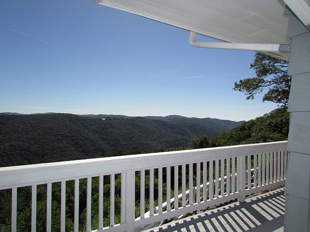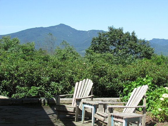 Wrap-around views! Classic Mid-Century Modern architecture. On the east, astounding views over Pisgah Forest & John's River Gorge to Blowing Rock, Mayview, & Cone Estate. On the west, a straight-ahead view to Grandfather, Hanging Rock, Seven Devils, & more. Porches wrap around 3 sides of this delightful contemporary rustic artistic ridgetop home on over 2-acres at appx 3975 elevation. Large great room shows off both views, several seating areas, and distinctive fireplace and hearth. Same Pisgah/Blowing Rock view from kitchen and dining room, which were remodeled in 2004, keeping the original character. Main level: master suite w/ 2 large closets; guest bedroom/bath suite; and 2 more guest rooms w/ spacious closets which share a nicely updated bath; pantry, 3 large closets. Lower level: den w/ stone fireplace; office w/full bath; mud room; & great enclosed porch party & playroom. All 4 baths are nicely updated w/subway tile, glass doors, shower seats, porcelain fixtures. Perfect stone patios, a small English garden. Lovely, walkable ridge-top property w/ lots of gathering spots
