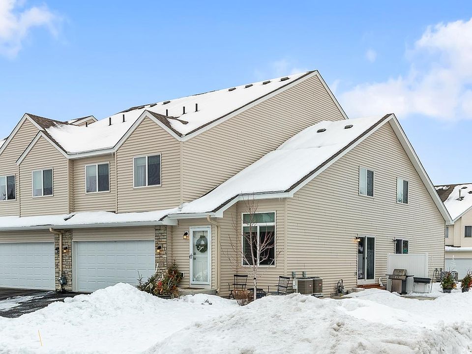 Newer end unit townhome in Wexford Square is sure to impress! Stylish touches throughout including enameled trim & paneled doors. Enjoy an open main level floorplan with a vaulted living room that creates a stunning entrance to the home. The spacious kitchen features attractive cabinetry in a rich warm tone, stainless steel appliances, breakfast bar and a wonderful pantry. The kitchen opens to the large dining room with sliders that lead to a patio. There is also a convenient mudroom off the garage with a closet and a half bath. Upper level features 3 bedrooms and large walk-in laundry with a Samsung washer and dryer. The primary bedroom is located at a private end of the upper level and features a large walk-in closet and custom Day/Night Sheer blinds. Unfinished basement with egress window offers future opportunities for you - fourth bedroom ability and a rough-in for a bathroom. Convenient commute to hwy 169.