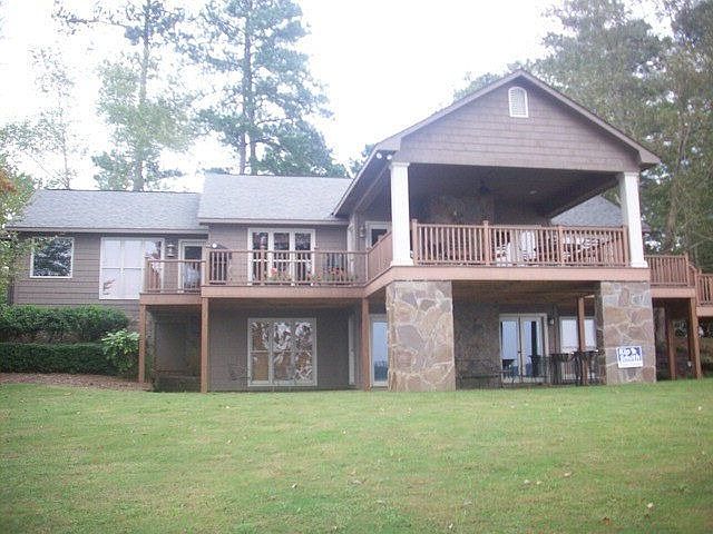 Excellent Broc Jones' remodeled lake front 4 bed 4 bath home on Lake Harding. This home boast the most spectacular sunsets and overall views on Lake Harding from a 20' x 17' covered T-Rex deck. The views can be seen from all 4 bedrooms, eating area, kitchen and family room. Each floor has a stone masonry wood burning fireplace. Other features include large garden tub, hardwood floors, 2 dens, beautiful master bath, walk-in closets, etc. This home is a must see on Lake Harding