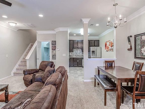 Lots of square feet for the money! Move in ready townhome in convenient Raleigh location. 9 ft ceilings. Heavy crown molding. Can lights throughout. Large living room. Separate dining area. Eat-in kitchen offers s/s appliances and tile back splash. Huge master suite with vaulted ceiling, fireplace, dual vanities, soaking tub with separate tile shower & walk in closet. 2 spacious spare bedrooms.