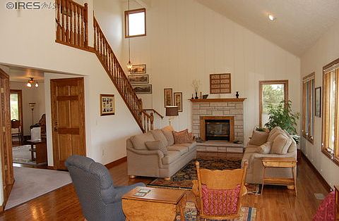 Sharp 2-story on 7.93 acres completely remodeled in 98-99! Beautiful meadows, rock out-croppings, and stunning views down valley. Bright open floorplan with huge master suite, vaulted great room with fireplace, oak kitchen overlooking dining area, and oak floors in most of home! Walk-out lower level office with private entrance and gas stove, mudroom with full bath, utility and storage area, and 2 garages. Just off main road & minutes to Lyons it's a great mountain retreat or horse property!