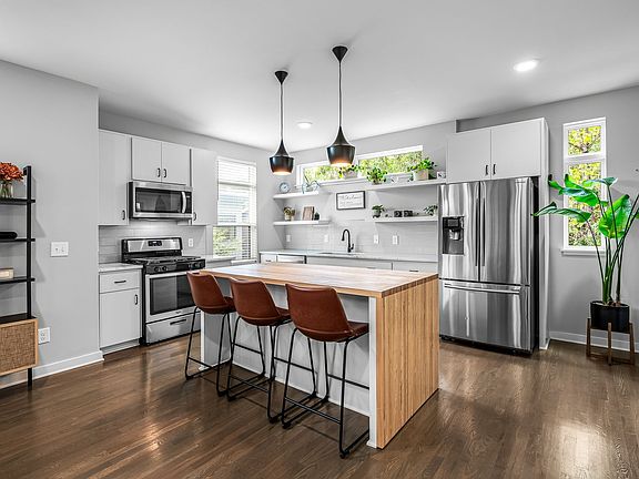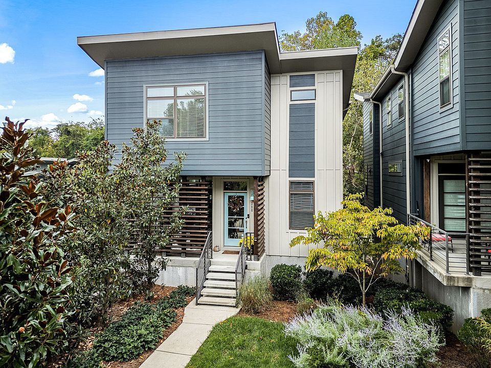 Welcome to your contemporary urban oasis in East Nashville! This stunning home features sleek modern finishes and an abundance of natural light, highlighted by elegant transom windows. The open-concept layout seamlessly blends living, dining, & kitchen spaces, perfect for entertaining or relaxing. Enjoy the functional kitchen equipped with stainless appliances, stylish cabinetry, granite counters, & an oversized island with a waterfall butcher block counter. Step outside to your private, covered patio with architectural screens, ideal for gatherings or quiet evenings. The oversized garage features a huge storage area doubling as a storm shelter & a finished flex space. The convenience of a 2-car garage is almost unheard of and ensures ample parking! A spacious primary suite allows for a true retreat at the end of the day complete with a walk-in closet, and spa-like bathroom featuring a separate soaking tub, tile shower, and dual sink vanity. You'll be surprised by all the storage in this home! Nestled in vibrant East Nashville, Joule offers courtyards, greenspace, & convenience as you'll be just moments away from downtown Nashville, the retail district, restaurants, & only a short walk to Cornelia Airpark & Shelby Bottoms.