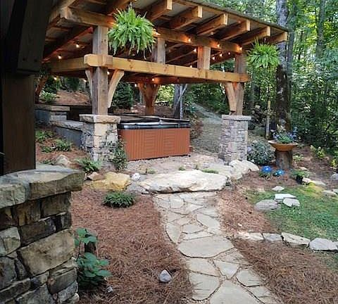 Outdoor living at its best with High elevation for cool summers. Two bedroom, two bath, large gas fireplace in living area, cathedral ceilings, open kitchen, bedroom downstairs opens to huge bath, loft bedroom and full bath, large covered back porch has stone wood burning fireplace, open dining and a few more steps to your own private hot tub. Covered front porch has rock face view, double garage with covered RV or boat storage. $525000