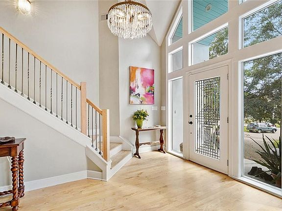 Just renovated and gorgeous open floor plan with soaring ceilings and walls of windows with natural lighting. A view of nature habitat and enjoy peaceful sunsets on screened porch. Walking distance to river front with restaurants, bars, Maritime Museum. Freshly painted and refinished wood maple floors. Master bedroom with double sided fireplace in master bath. Spacious 4 bedrooms 3 full baths and 2 half baths with lots of storage. A must see!!