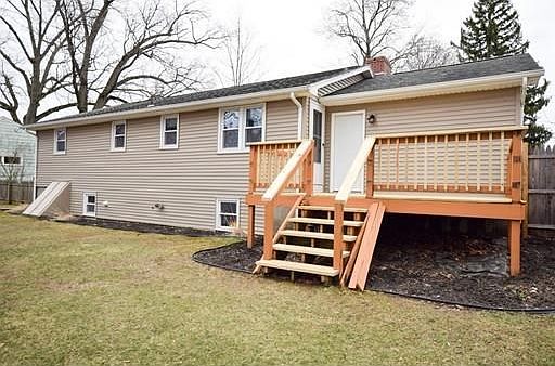 Begin here w/ this perfect self- starter home. Expect to be impressed by this lovely Ranch. Renovated kitchen offers newer cabinetry, granite c tops, ss appliances, eat in dining area w/ access to deck overlooking backyard, perfect for entertaining guests! Bright & spacious living room awaits you with brick hearth fireplace for those cozy winter nights! The right wing of this home offers a master bdrm w/ hdwd flrs, renovated full bth & two guest bedrooms w/ hdwd flrs. Outdoor enjoyment begins here with this fabulous flat fenced in back yard abutting woodlands. Just an awesome bonus... Additional living space awaits you in the lower level featuring a generous sized family rm w/ firplc, playroom & half bath/ laundry combo. Seller states upgrades include: Vinyl siding, replacement windows, roof - all in 2010. Kitchen renovation, hdwd in kitchen (2012), partially finished family rm, playroom, bath/laundry combo, heating system & central air - all in 2013/2014.
