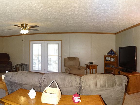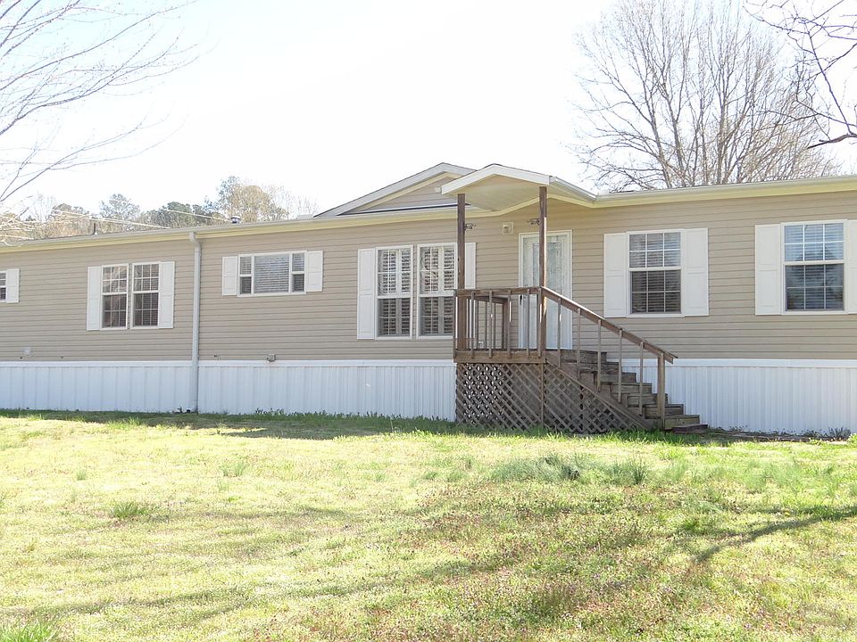 Pristine 4 bedroom 2 bath mobile home situated on 1.59 acres! This home has a split floor plan with an open kitchen and living area, large laundry area and even has office space in the hall! Covered Deck too!