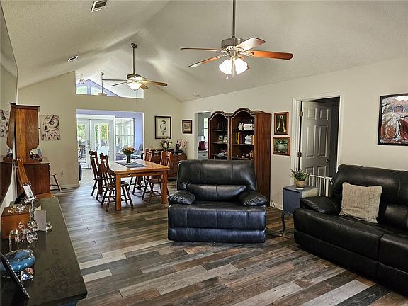 Welcome to 300 Crestview Drive in Woodbine, GA—an exceptional home offering a perfect balance of comfort, style, and outdoor living. Situated on nearly an acre of land, this beautifully maintained 3-bedroom, 2-bathroom residence spans 1,563 square feet and features a thoughtfully designed split floor plan. Inside, you’ll find a spacious living and dining area with vaulted ceilings that flows effortlessly into a bright sunroom, ideal for relaxing or entertaining. The kitchen includes an eat-in breakfast nook and connects to a private laundry room with built-in shelving for added storage. The owner’s suite is generously sized, complete with a large walk-in closet and an en-suite bath, while the two secondary bedrooms and additional full bathroom are located on the opposite side of the home, offering privacy and flexibility for guests or family.