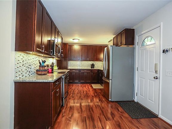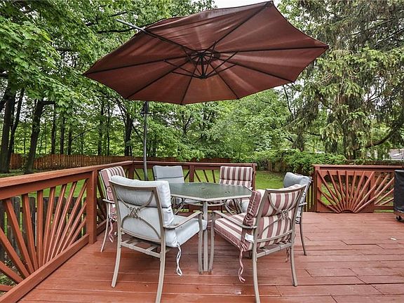 This well updated ranch home features an all new kitchen remodel with dark colored Kraftmaid dovetailed cabinetry, granite counters, new stainless steel appliances, neutral paint colors, all new flooring throughout, new windows in 2008, updated bathroom, scenic backyard with massive lot nestled behind neighborhood houses for maximum privacy. Fully fenced in yard, sprawling deck, newly sealed driveway with ample parking, well maintained gardens and a bomb shelter hidden under the backyard! Clean/dry basement with second egress, pride in ownership shows throughout this home!