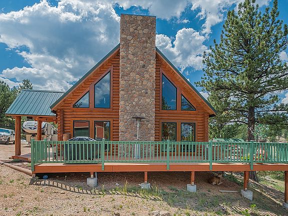 Beautiful log home moderately treed lot on a peaceful cul-de-sac. Large living room with picture windows, gas burning fireplace, bamboo flooring & ceramic tile entry. The dining area has large windows to view the gorgeous lot & mountains. Dining area features a walk-out double door to the deck. Kitchen has ample counter space & cabinets with eat-in counter bar area & custom mountain mural. In addition the main level has a large bedroom & adjacent bath with tub/shower combo. Laundry room is on the main level & includes a stackable washer-dryer. Upstairs master bedroom has large storage closets & additional area that can be utilized as a suite or office area. This home has gorgeous wood work with vaulted & beamed ceilings. This home is turnkey & includes the interior furniture and decor. There is over 504 square feet of deck area with a hot tub. To top it all off, there is a large oversized 22 x 34 detached garage with the workshop area at 15 x 12. Garage-workshop has its own electric.