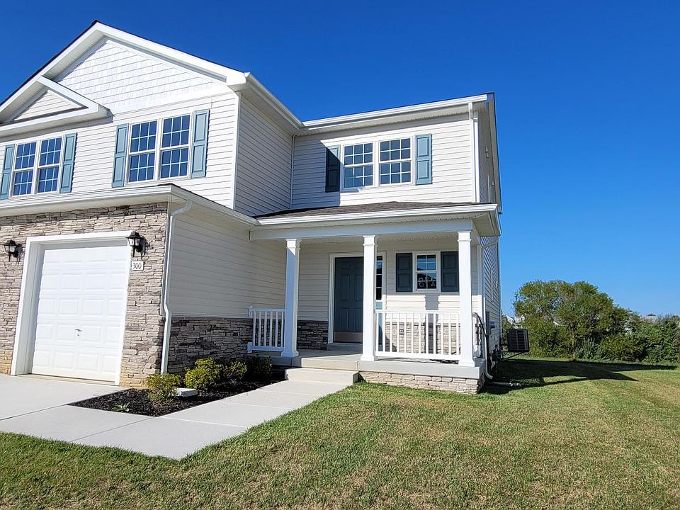 Quick delivery new construction home with four bedrooms, two and a half baths, full basement, garage and pond view, now available by award winning Lenape Builders in the popular community of Centerville. This beautiful community has open spaces, sidewalks and street lights. It is nestled in the town of Smyrna, with nearby amenities like Lake Como, Garrison Lake, Big Oak Park, tax free shopping, restaurants and historic Main Street. At first glance your new home has a lush sodded front lawn, stone masonry highlights along the watercourse and garage, and a welcoming front porch. At the front door is a side transom window to let in additional light and a convenient coat closet in the foyer. Luxury vinyl plank flooring starts in the foyer and runs throughout the main level. The sizeable great room and dining room are at the back of the home and offer views of the pond. The dining room has a slider to the rear deck. The spacious kitchen is every cook’s dream with long granite countertops, stainless steel appliances including microwave and dishwasher, breakfast bar overhang, recess lighting, and soft close cabinets and drawers. There is a huge walk in pantry, next to the laundry room. There is also a powder room that finishes out the main level. The large owner’s suite has a substantial size walk in closet and another closet at the bedroom entrance. The owner’s bath has comfort height double sink vanity, walk in shower with seats and a linen closet. There are three more bedrooms, two with walk in closets and a hall bath on the second floor. The full basement with egress window is ready for your customization. There is also a garage to keep your vehicle out of the weather. In addition there are double hung windows and a central vacuum. The home is walking distance to Sunnyside Elementary. Don’t miss out on this beautiful home, book your tour today!