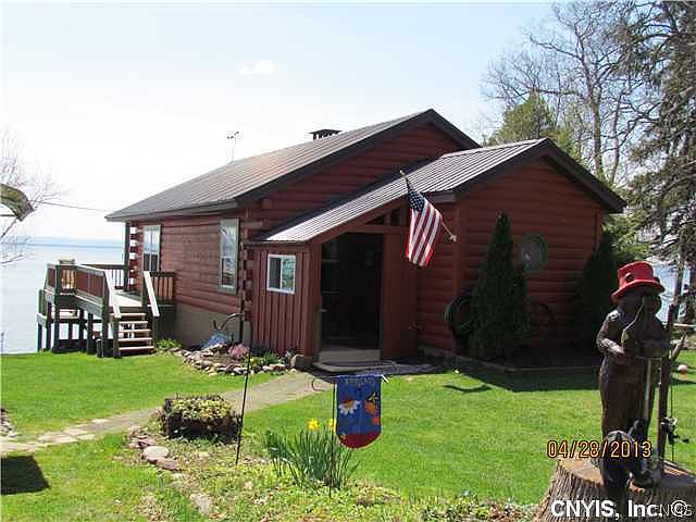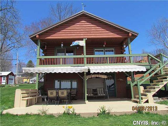 Contemporary Log home with 104 feet of Oneida Lake front. Meticulously maintained and updated. Garden shed and storage shed as well as detached garage. Dock included so you can just bring your boat and enjoy