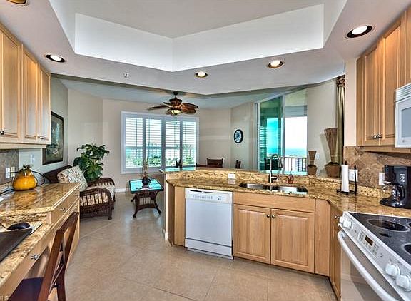 Soak in sunset views over the Gulf with this 11th floor luxury condo at The Dunes. Royal Floridian décor and fixtures throughout, large diagonal tile in living areas and carpet in bedrooms, tray ceilings, and stylish chandelier in the formal dining space. Kitchen has gorgeous granite countertops and complementary tile backsplash. Master Suite offers spacious bathroom with duel sinks, garden tub, and walk-in shower, and stunning views from the balcony. Fantastic vacation or retirement home, or seasonal or annual rental. Within walking distance to Vanderbilt Beach and Delnor Wiggins State Park, this condo is the closest walking distance to the amazing and unique amenities like the one-of-a-kind Plantation Club. The Plantation Club features six lighted Har-Tru tennis courts and a pro shop, a full service fitness center, spa and massage center, as well as a lagoon style resort pool with a gazebo housing a hot tub, waterfalls, and full service food and beverage area. Indoor and outdoor dining and bars are offered at the club restaurant, which has a diverse menu and Caribbean aesthetic, as well as a Poolside Cafe entirely outdoors with umbrella-covered seating and maximum relaxation.