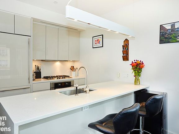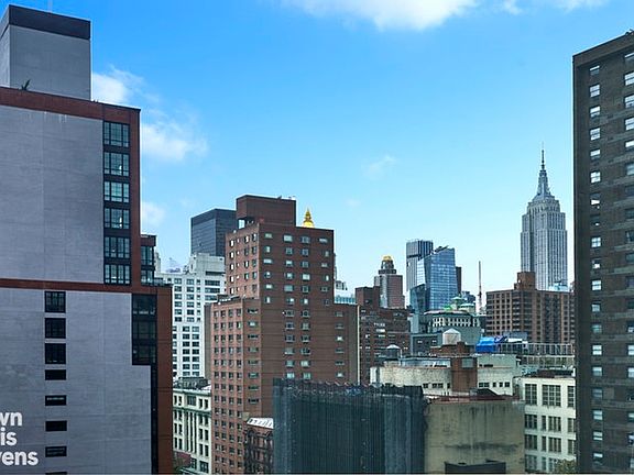 Luxury living awaits you in this amenity filled building, The Tempo. Wake up every morning in this light filled apartment with great exposure to the west with its oversized windows and views of the Empire State Building, or enjoy open city sky to the east and start your day with a coffee on your balcony just off the master bedroom. This quiet apartment has ceilings over 9 feet in height, with both a master bath and powder room. The apartment also has a flexible- use space for a home office or den. Kitchen and bathroom cabinetry are customized by Grupo Italia, with appliances by Bosch with subzero refrigerator and separate washer and dryer off the foyer. The Tempo has a 24 hour full five star concierge service, fully equipped fitness center and spa, and sky deck with an outdoor grill, and one of the more remarkable rooftop views in the entire city. In the warmer months you can enjoy the outdoor movies just off the residents lounge in the inner courtyard. Pets are allowed.