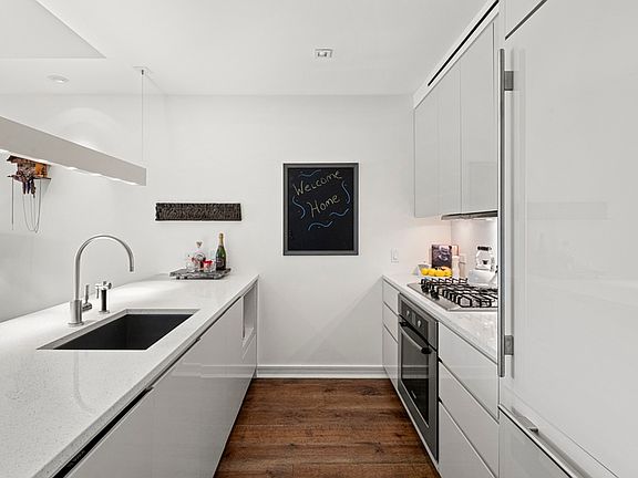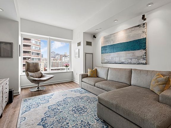 An abundance of natural light envelops this spectacular 2-bedroom, 2-bathroom home graced with a near-perfect floor plan and a collection of high-end finishes. Features of this 1,186 sq. ft. apartment include gorgeous new 7.5" plank wire-brushed oak floors, airy 10-ft ceilings with new recessed lighting installed throughout, floor-to-ceiling and oversized windows with double north/south exposures allowing for natural light to fill the space all day, and a private 68 sq. ft. open air balcony with unobstructed views of the sky. The home boasts pre-wiring for theatre-quality surround sound, central heating and cooling controlled by NEST thermostats, and an in-unit Bosch washer/dryer. The home also comes with a private storage unit. Enter this idyllic sanctuary of modern urbanity with a 17-ft entryway that flows into a 31-ft long, open-concept living room, dining room, and kitchen. Natural light permeates this space during the day and breathtaking visibility of the New York City skyline as far north as Times Square lets you count-down New Years Eve from the comfort of your living room. Living room upgrades include gorgeous recessed lighting and a Bose theatre-quality surround sound system. The kitchen is equipped with a massive eat-in peninsula, Gruppo Italia custom cabinets, sleek quartz countertops and matching backsplash, and a suite of high-end, fully-integrated appliances from Bosch, Sub-Zero, and Miele. The primary bedroom possesses a walk-in closet, south-facing floor-to-ceiling windows that fill the room with natural light throughout the day, access to the private open air balcony, and an immaculate en-suite bathroom with a large walk-in shower, a floating vanity, Terrazzo walls and floor, Dornbracht fixtures, and Gruppo Italia finishes. The spacious second bedroom has oversized south-facing windows and a large 10-ft reach-in closet. The second full bathroom is appointed with SMC stone floors, a Zuma tub, and mosaic tile wall. Both the primary and secondary bedrooms have new recessed lighting installed throughout and beautiful new custom blackout and sun shade installations by The Shade Store. Tempo is a full-service condominium situated just three blocks from Gramercy Park. Amenities include a full-time doorman, 24-hour concierge service, a state-of-the-art fitness center with equipment by Peloton, a spa and hot sauna, a private lounge, a gorgeous furnished rooftop deck with unparalleled 360-degree panoramic views of New York City with grilling stations, and a courtyard garden with an outdoor screening space. The building is just steps from restaurants, cafes, bars, and shops, and is about ten minutes from both Union Square and Madison Square Parks. Nearby subway lines include the 6/R/W. Pets are welcome.