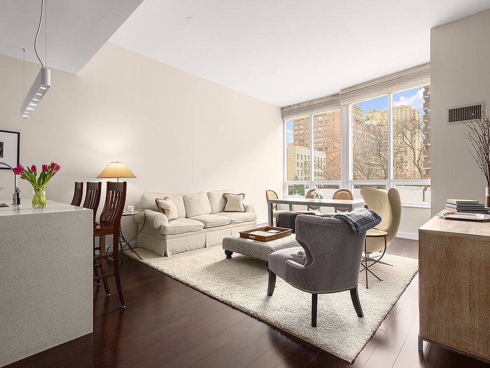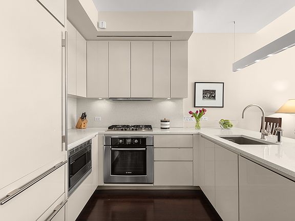 Sleek and modern 2-bedroom, 2-bathroom home available at the full-service Tempo condominium. Enter through a generous foyer with large closet and be welcomed by your loft-like space with over 11' ceilings and a wall of oversized windows letting in an abundance of light. Other highlights include wide-plank floors and an open concept plan for easy entertaining. The modern kitchen features top-of-the-line appliances, white lacquer cabinetry, white stone countertops and a large peninsula with seating. Both bedrooms are generously sized and the primary features an en-suite bathroom with walk-in-closet and glass enclosed walk-in shower. The secondary bathroom includes a deep soaking tub. There is also central air conditioning and heating, in-unit washer/dryer and private balcony. The Tempo is a full-service condominium and features 24-hour doorman, fitness center with sauna, treatment room and a stunning rooftop deck. Located in the highly sought-after Gramercy Park neighborhood, you'll be minutes from transportation and the best restaurants, shops, and entertainment that the city has to offer. Sorry No Cats.