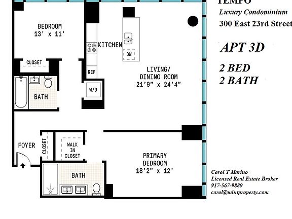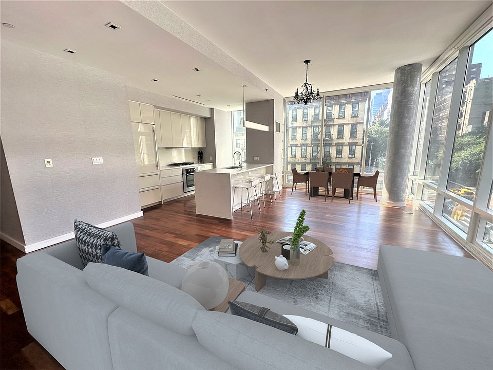 Rarely available for rental! **2 bed 2 bath at TEMPO Condominium - Flexible lease start: Mid October-November 1** Apt 3D is an impressive and elegant corner unit with a sprawling open floor plan with room for all - including dining area, living and entertainment center plus home office and features floor-to-ceiling windows with brilliant all day sunshine and sunset views from & its' southern and western exposure with beautiful Merbau 5" wood floors and 10-foot ceilings throughout. The inspiring gourmet kitchen, designed by Gruppo Italia, includes plentiful custom cabinetry, stone countertops and backsplash, large breakfast bar and Bosch appliances is sure to welcome guests for entertaining. The King-sized master bedroom has on suite lovely bath with full shower and high end fixtures and also a custom walk in closet. Queen sized 2nd bedroom, located on the opposite side of the apt, has enormous double closet with an adjacent full bath with full soaking tub. Other highlights include in unit washer/dryer, remote controlled solar shades, 3 zone central heating and air conditioning & monitored individual security systems by Unitone. Storage unit is available. This sophisticated condo boasts five-star concierge services provided by Abigail Michaels, a Huge fitness center including spa; a community indoor and outdoor lounge and rec room, with courtyard and garden including an outdoor screening area. The 21st floor roof deck has sundeck, plenty of lounges and tables with outdoor grills and breathtaking 360 city views. TEMPO is just steps away from the exclusive Gramercy Park, and is in walking distance to Union Square, numerous subway lines, and some of the city's finest shops, restaurants and nightlife venues. Contact me for private showing and more details.