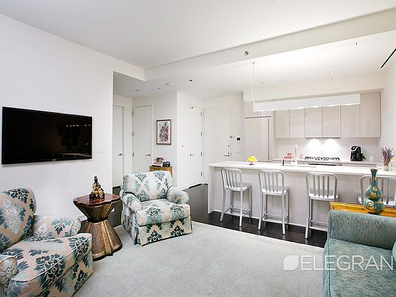 Spacious 1-bedroom, 1-bathroom condo available in the Tempo, a full-service luxury building located in the heart of NYCs most dynamic and culturally diverse neighborhoods. This modern home features a large great room with 10 foot ceilings that is perfect for entertaining and an open chefs kitchen with top-of-the-line appliances from Viking, Sub-Zero, and Bosch. The unique chefs kitchen also features Gruppo Italia lacquered cabinetry, SMC quartz countertops, and a large waterfall island. There are Merbau wood floors throughout as well as central air conditioning and a Bosch washer and dryer. Unwind after a long day on your own private balcony. All of this inside of the Tempo, a modern luxury condominium with a fitness center, sauna, 24-hour doorman, and an impressive roof deck with BBQ stations - perfect for summertime grilling. The building is located in Gramercy Park, near NoMad, Flatiron, Union Square, and all of the high-end shops, dining, and nightlife these neighborhoods hold.