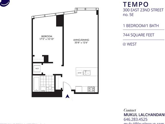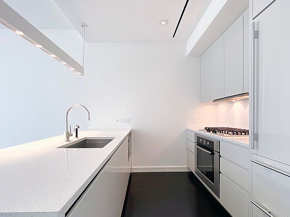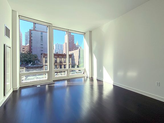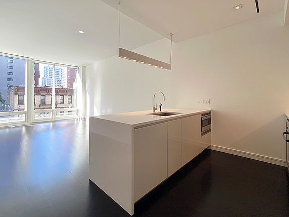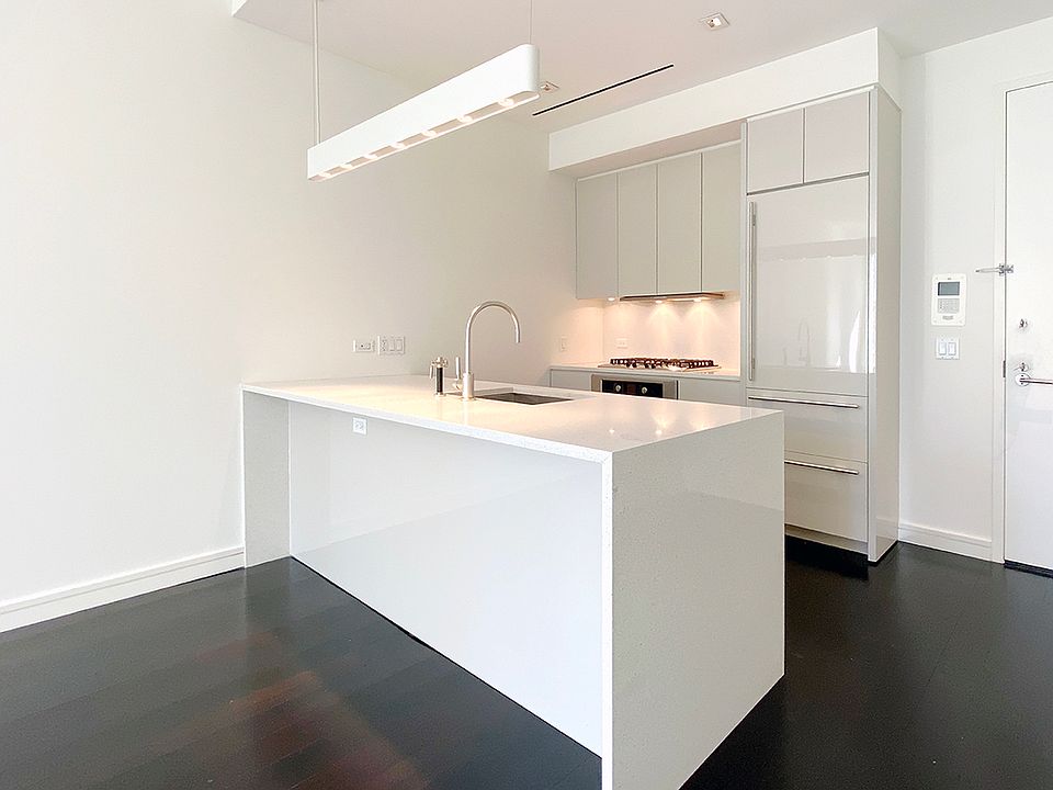 Known for its well-crafted luxury finishes, 300 E. 23 Street apartment no. 5E is a 1-bed/1-bath condo for rent located in Gramercy. This 1-bedroom apartment features large floor-to-ceiling windows with striking views of the neighborhood Manhattan streets, plenty of natural light, 10 ft. high ceilings, and beautiful dark oak hardwood floors giving the space a high-end feel. The kitchen features crisp modern glossy countertops favoring a minimalist aesthetic and stainless steel appliances from Bosch and Sub-Zero. The bathroom includes a deep soaking Zuma tub adding to the modern details of the interior space. In addition, there is a spacious closet in the bedroom. A washer/dryer is included in apartment no. 5E. Tempo is a mid-rise luxury condo located at 300 E. 23 Street between Second Ave and First Ave in Gramercy. Building amenities include a courtyard, fitness center, sauna, lounge, common storage, rooftop deck, and WiFi access. Located in Gramercy, you are a few blocks from the 6 train, Flatiron, and Madison Square Park.