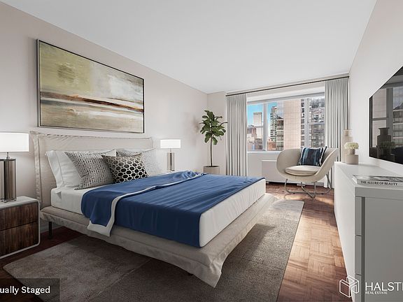 Wonderful 21st floor immaculate two bedroom home, fantastic layout and Empire State Views!! This Sun-flooded residence offers western exposure and walls of windows as you enter this rarely available gem. Features include very spacious foyer, which flows wonderfully into a large living room, split bedrooms and extra- large master with a walk in closet. Deluxe renovated kitchen with custom cabinetry, granite counters, Viking stove and top of the line stainless steel appliances. The bathroom is equally lovely with marble tiles and custom vanity. Glorious closets throughout, hardwood flooring and beautiful crown molding complete this must see home! The Churchill, a white glove building, provides residents with outstanding service and amenities including a 24-hour door staff and concierge, laundry on all floors, new fitness center, sauna, residents lounge, landscaped rooftop decks with incredible views, an outdoor pool, valet service, bicycle room, and garage. The Churchill is a Cond-Op with condominium rules and permits investors, subletting and pets. (30lb weight limit permitted). Close proximity to transportation, restaurants and shopping. Do not miss the chance to make this one your own either to live or invest in.