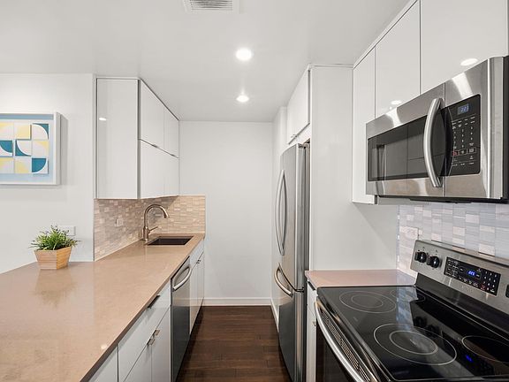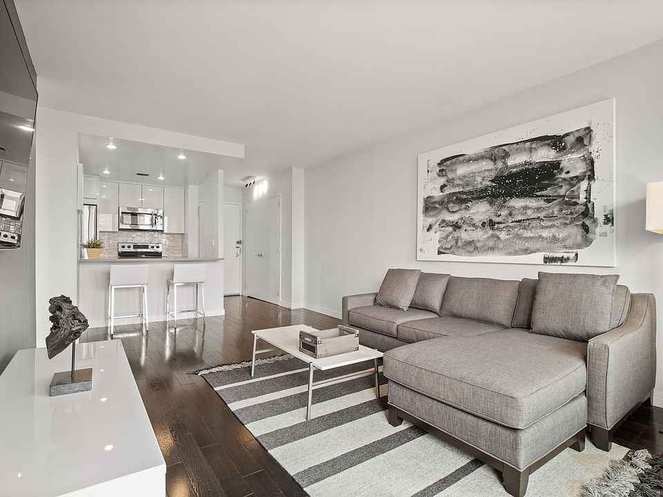 Make gorgeous Sutton Place and East River views your daily backdrop in this masterfully gut-renovated high-floor corner one-bedroom, one-bathroom co-op featuring mint-condition designer finishes, excellent storage, and private outdoor space.The bright and sunny corner-unit welcomes you inside with lovely southern and eastern exposures, tall ceilings, and gleaming hardwood floors. Relax and entertain in the oversized living room, or step on the balcony to take in stunning views that stretch across the neighboring rooftops all the way to the East River and 59th Street Bridge. Chefs will love the beautifully planned kitchen featuring sleek cabinetry, quartz countertops, glass tile backsplashes and breakfast bar seating. The all-new Samsung stainless steel appliances include a French door refrigerator, dishwasher, glass-top electric range, and a built-in microwave.Head to the queen-size bedroom to discover double exposures and a roomy custom closet. The adjacent windowed bathroom dazzles with a walk-in rain shower with a hand sprayer, a Toto toilet, extra-large medicine cabinet, handsome vanity, and contemporary fixtures. Two more custom closets and central HVAC add comfort and convenience to this move-in ready home in the sky.Connaught Tower is a sought-after postwar cooperative offering low monthly maintenance fees and excellent financials with a healthy reserve. Residents of the exquisitely maintained, pet-friendly building enjoy 24-hour doorman service, a live-in superintendent, driveway access and a beautiful lobby with three elevators. The long list of amenities includes a fitness center with a sauna, a year-round indoor pool with an adjacent rooftop lounge and terrace, a courtyard garden, central laundry, bike room, storage (for a fee) and a parking garage (discounted for residents) with direct building access.Located at the intersection of Midtown East and Sutton Place, this beautiful home offers residential serenity surrounded by the best of Manhattan living. Enjoy fantastic dining and nightlife venues in every direction. Whole Foods Market, TJ Maxx and Bloomingdale's are blocks away, and world-class luxury destinations line nearby 57th Street. Boutique fitness studios and glorious waterfront outdoor space along the East River promenade add to the outstanding quality of life. Transportation is effortless with E, M/F, 4/5/6, N/Q/R/W trains, excellent bus service, CitiBike stations, the FDR and 59th Street Bridge all nearby. Co-exclusive with Compass