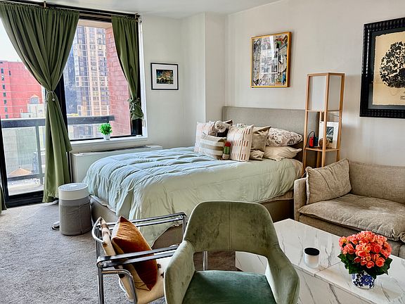 Gorgeous bright and open City and River views from the 17th floor! Start your morning with a sunrise and a cup of coffee on your private balcony above the city and the skyline. Lots of closets, marble bathroom, dishwasher and microwave.