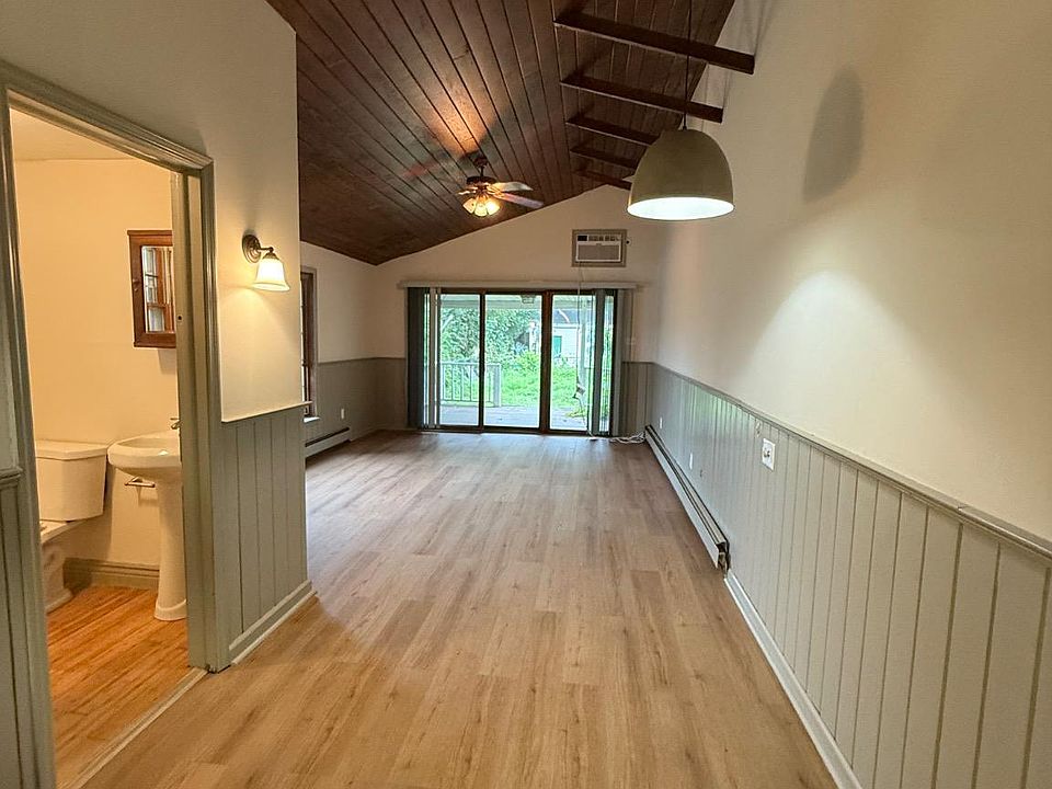 Newly renovated! This large 4-5 bedroom house sits on more than a half acre. You won't believe all the space! There are so many ways to utilize all this space. Walk into a large entry room connecting to an eat-in kitchen which sits next to a large Living Room with vaulted ceiling and full bathroom and sliding doors to the big yard. There is a bedroom and full bath in front. Versatile additional room with low ceilings and built in lighting. Second floor has two bedrooms and a full bathroom. Third floor bedroom has high ceiling as well. High hats and built-in lighting throughout. New floors and new carpet throughout. Laundry in basement. Convenient to all public transportation.